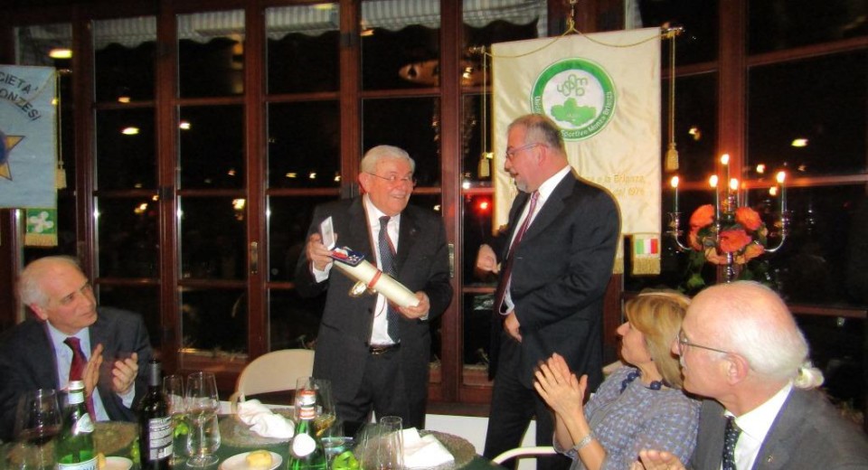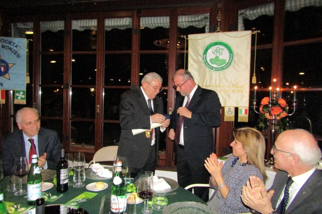 Poco dopo un altro riconoscimento, un grazie riservatogli da dirigenti dell’USSMB e da amici: un medaglione d’argento con dedica consegnatogli dagli altri vicepresidenti: Riccardo Corio e Vincenzo Magni. Varie forme per esprimere in modo tangibile e prezioso tanta ammirazione e riconoscenza.
